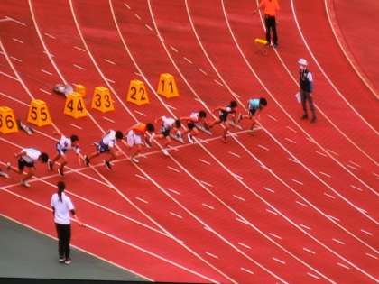 5年生の選手が、100m走やリレー競技に出場しベストを尽くしました。