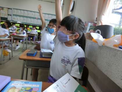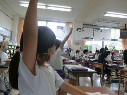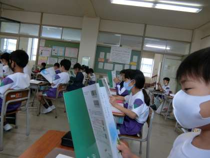 なかがわ りえこ作「くじらぐも」を読む1年生。今日は、5の場面を中心に学んでいます。