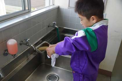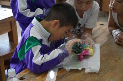 学習発表会で身に付ける衣装を自分たちで染めました。