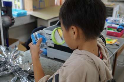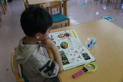 教室に入ってきた昆虫を捕まえ、名前を調べました。