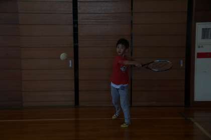 昨日に続き、体育館で打撃練習をしました。ボールをよく見て打つことを心がけ、ラケットにどんどん当たるようになりました。