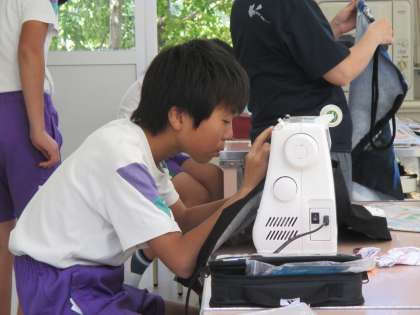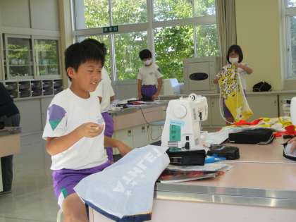 先日から取り組んでいるエプロンづくり。みんな、着々と完成に近づいています。