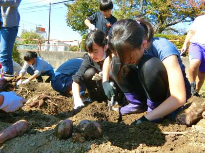 農園には、サツマイモの大きさを物語るかのように大きな穴がいくつもできていました。