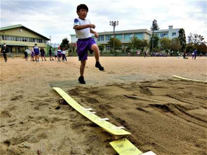 業間に、グラウンドで、全校体力つくり活動を行いました。