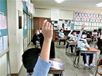 教育実習生による漢字の授業。互いにやる気満々です。