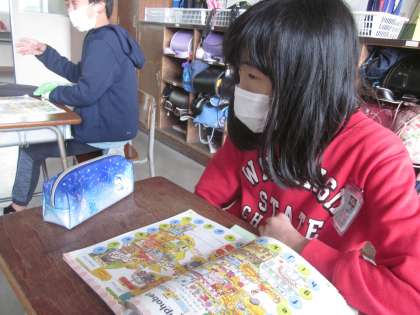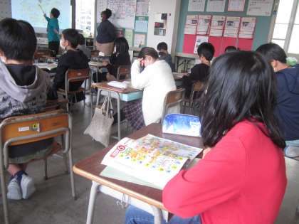 4年生の外国語活動の様子。ALTの発音をしっかりと聞きました。