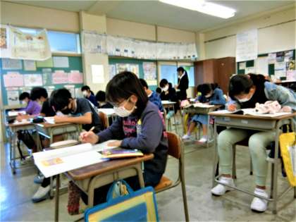 6年生の道徳科の学習。今日は、「ブランコ乗りとピエロ」という教材文を読んで、広い心について学んでいます。