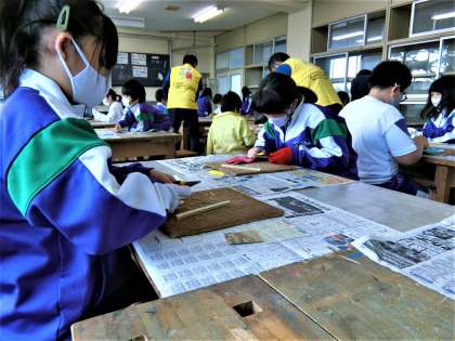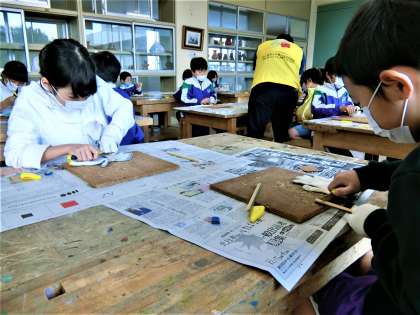 自然の家から講師をお招きして、4年生は小刀の使い方を学習しました。