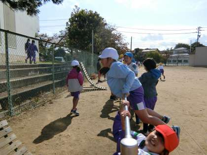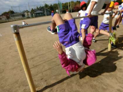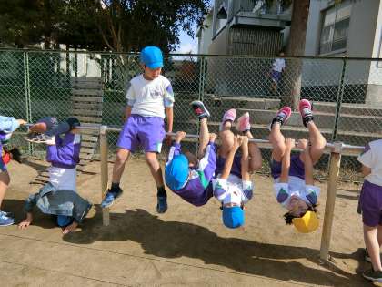 3時間目の2年生。今日は、外で鉄棒運動にチャレンジ。