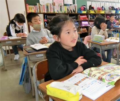 先生や友達の考えをよく聞き、教科書の考えとも比べて、かけ算をすることの意味を考える2年生。