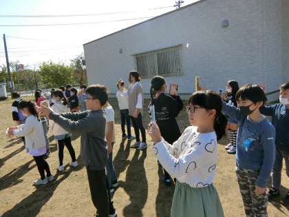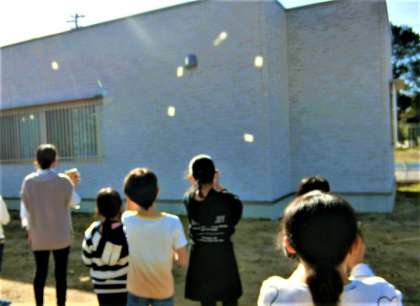 日光を反射させて学ぶ好日となりました。3年生一人一人が鏡を手にして日光に働きかけています。