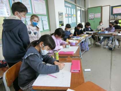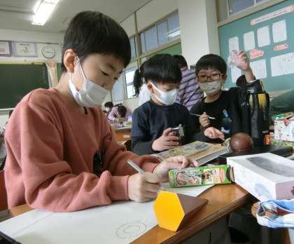 11月5日(木) 1年生 箱の形を写し取りながら 1