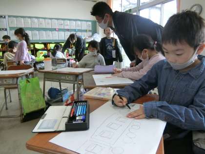 11月5日(木) 1年生 箱の形を写し取りながら 2