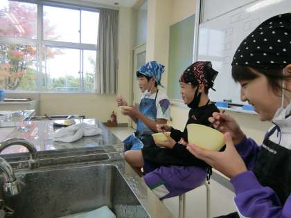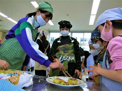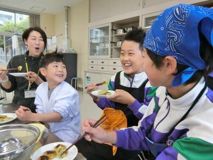 家庭科室はサツマイモの甘い香りでいっぱい。子供たちの笑顔もいっぱいの楽しい時間を過ごしました。