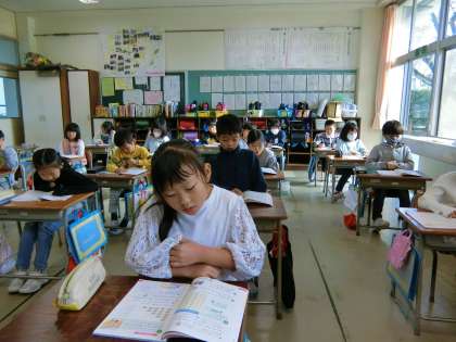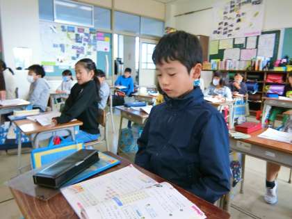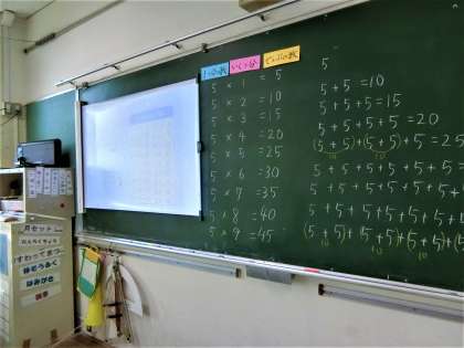 かけ算九九の学習。今日は、五の段の九九を唱えてみました。