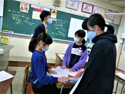 織田信長と豊臣秀吉の業績を基に、天下統一への貢献度を討論しました。注目した事実に、その子らしさがうかがえました。