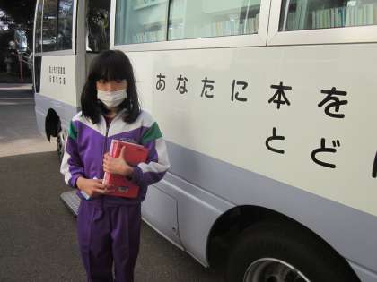 自動車文庫の様子。自動車の中でも、みんなで仲良くできました。