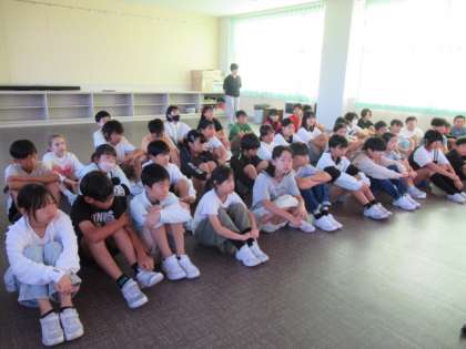 今朝、5・6年生合同であいさつ運動について話合いました。