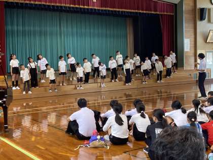 9月の26日に黒田先生から受けた指導を生かし、友達の声を聞きながら綺麗な声で歌いました。