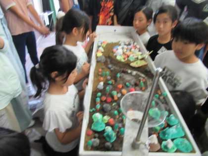 常願寺川のジオラマづくりでは、実際の川の傾きを国土地理院のホームページから調べ、再現しました。子供たちの学ぶ意欲が形になりました。