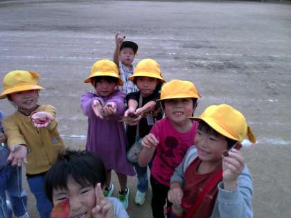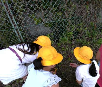 生活科の学習で、グラウンドに秋みつけに行きました。どんぐりや赤く色づいた葉を見つけたり、金木犀のにおいを楽しんだりしていました。