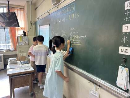 実生活で見積もりをするとき、どのように計算するのか、考えを教室全体を使って考えました。