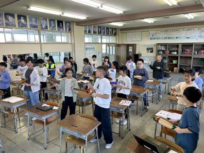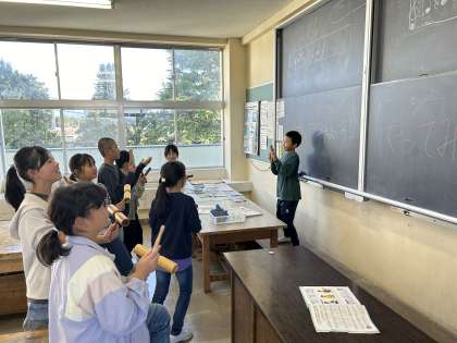 選んだ楽器の友達とどのようなリズムにするのか考え、練習しました。