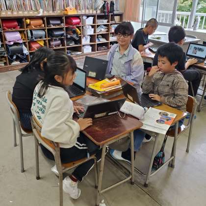 社会科では、五箇山・八尾・高岡について、これまで子供たちが調べてきたことを発表し合いました。互いの話すことを興味津々で聴く姿から、学習を楽しんでいることを感じます。