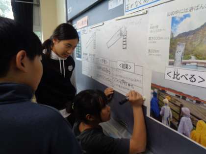 1学期に見学に行った常願寺川の流れを元に、水のはたらきを 実験や観察を通して考察しました。