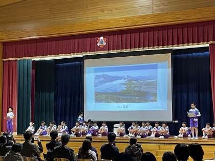 理科と総合で学んだ「流れる水のはたらき〜常願寺川から学ぶ〜」の発表をしました。実際に常願寺川に行って感じた驚き・疑問、それを解決するための調べ学習、実験、たくさん意見交換によって深めた考察…すべての学びに真剣だった子供たちの思いが、全身から伝わってくる発表でした。大きく成長した子供たちの姿から自信と達成感が伝わってきました。