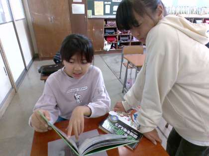国語科の「固有種が教えてくれること」を読んで、図表などの資料の使うことの効果をたくさん見つけた子供たち。今度は図書館にある科学や自然環境について書かれた本を選び、資料の使い方の効果を感じながら読みました。