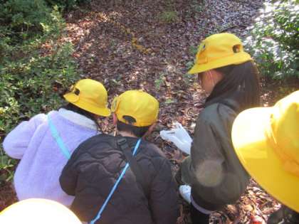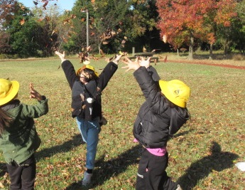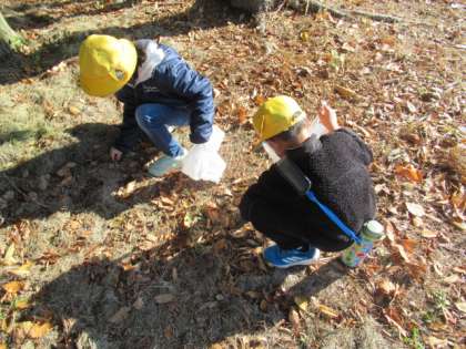 1、2年生で緑地公園に行って、秋みつけをしたり遊具で遊んだりしました。たくさんのどんぐりを見つけたり葉っぱを空に向かって投げたりして楽しみました。