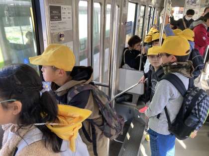 今日、富山市科学博物館で星や天体の学習をしました。博物館までは、電車やバスを乗り継いで行きました。