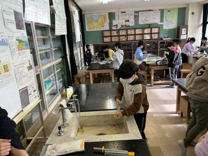 水は空気と同じように押しこむと体積が変わるのか予想し、確かめました。