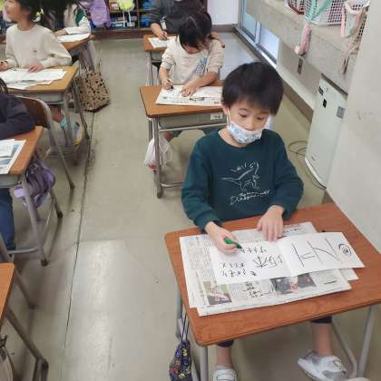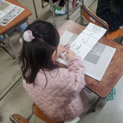 少し時間が余ったので、自分の好きな文字が硬筆墨でもうまく書くことができるか挑戦してみた子供もいました。