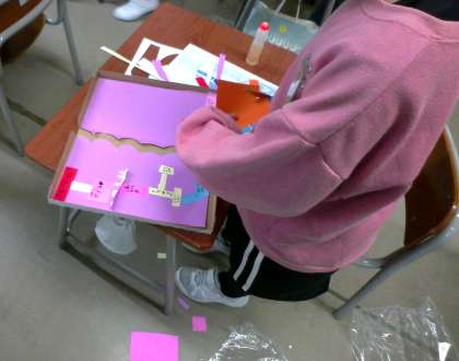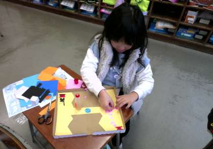 図画工作科の学習で、自分で考えたおはなしをすごろくに表しました。まだ制作途中ですが、どのようなおはなしのすごろくになるか楽しみです。