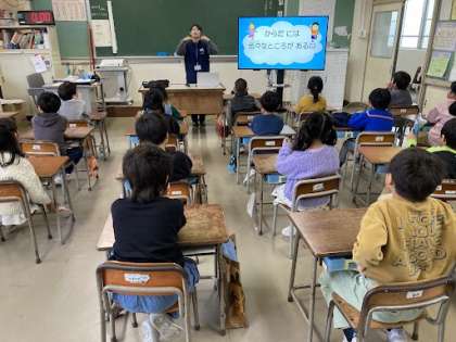 子供たちが性暴力の加害者にも、被害者にも、傍観者にもならないことを目的とした「くもくん教室」を、富山県警察少年サポートセンターの方を招いて実施しました。低学年でも分かる内容で、子供たちは、プライベートゾーンについて学習しました。