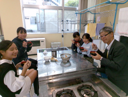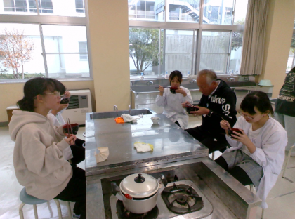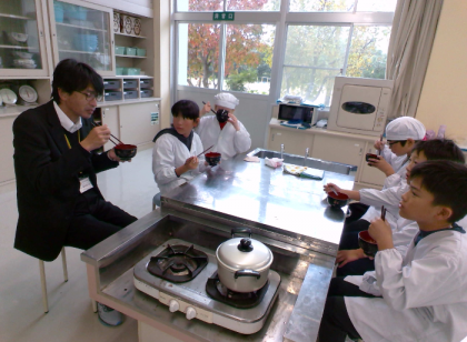 お世話になっている先生方に好きな「だし」「実」「切り方・に方」をインタビューし、よろこんでもらえるみそしるをつくりました。先生方から「だしがきいていておいしいよ。」「大好きな実を全部入れてくれたんだね、ありがとう。」「ていねいに切ってあるよ。大きさも食べやすくてちょうどいいよ。」などたくさん感想をいただきました。ゴールである「家族がよろこぶみそしるをつくろう」に生かせる学びがたくさんあったようです。