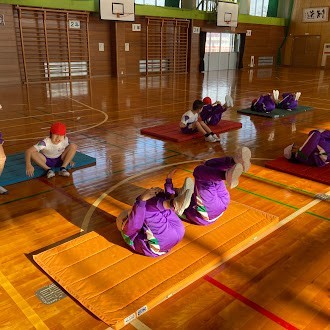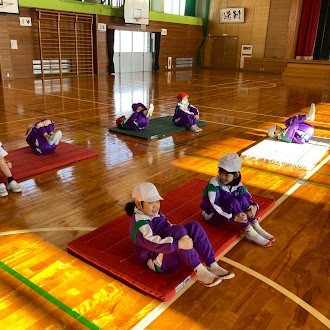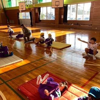 マット遊びを始めました。ゆりかごからの立ち上がりやカエル逆立ちに挑戦しました。