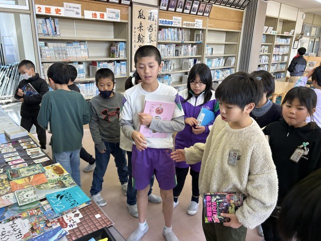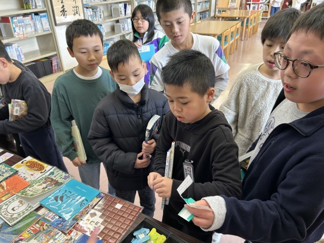 今日は、環境・図書委員会が企画した「新春 本みくじ」が行われました。図書室で本を借りるとおみくじが引け、出た運勢よって景品がもらえるものです。子供たちは、ドキドキしながらおみくじを開封し、楽しんでいました。
