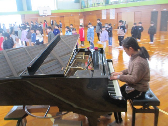 3学期の始業式から、5年生が式の準備・片付けをしています。ピアノの伴奏も学校の代表として立派に弾き、クラスみんなで大きな声で校歌を歌いました。学校をまとめる立場になる準備が始まっています。