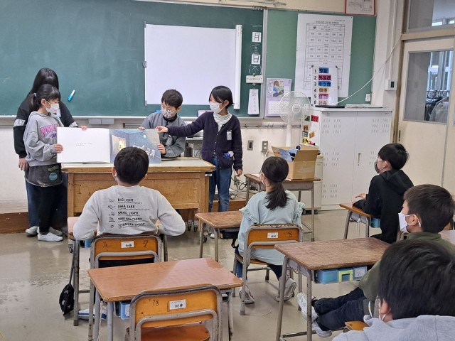 しんとした薄暗い待合室の雰囲気が伝わってくる読み聞かせに、みんな聞き入っていました。