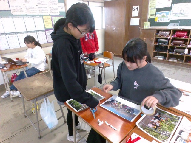 卒業お祝いプロジェクト。いくつもの役割をかけもちしながら、優先順位を考えて進めたり、気づいたことを友達に伝えたりして、よりよいものにしようと進んで活動する姿が見られます。