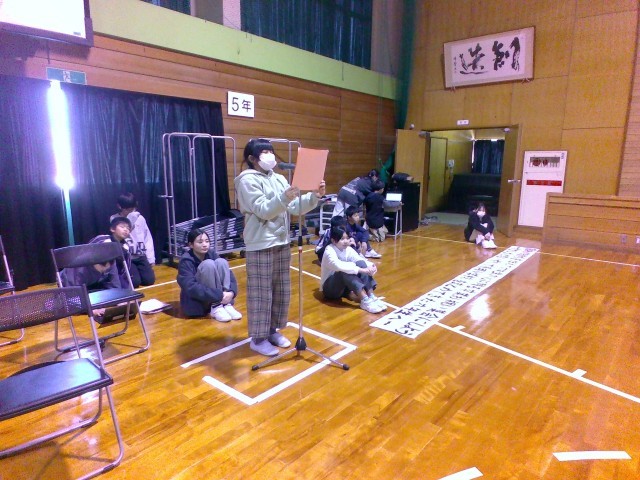 会場設営や、司会の練習を行いました。みんなで声を掛け合い、よりよい集会を目指して一生懸命取り組む子供たちです。