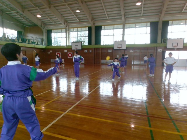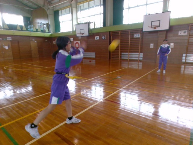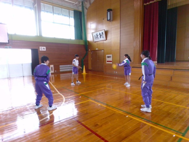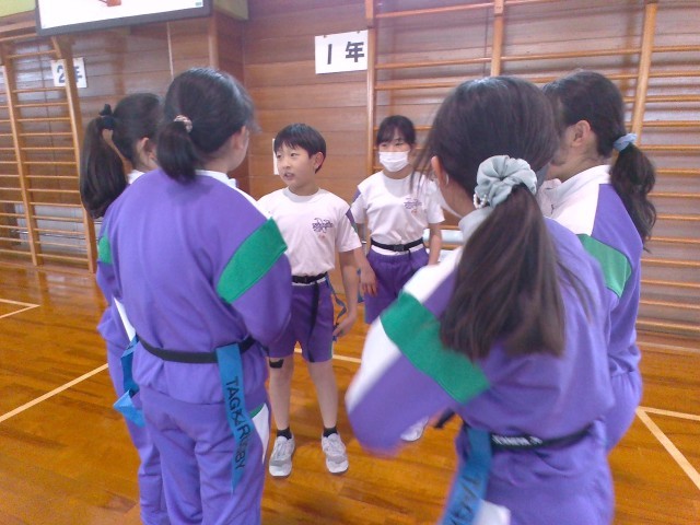 タグラグビーのルールを学んで、ボールのパスの仕方を練習しました。バスケットボールと違ってボールを前に出すことができないので、初めは戸惑っていましたが、友達と声を掛け教え合いながら楽しく学ぶことができました。