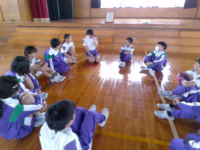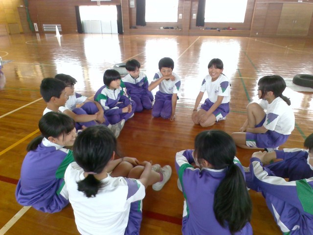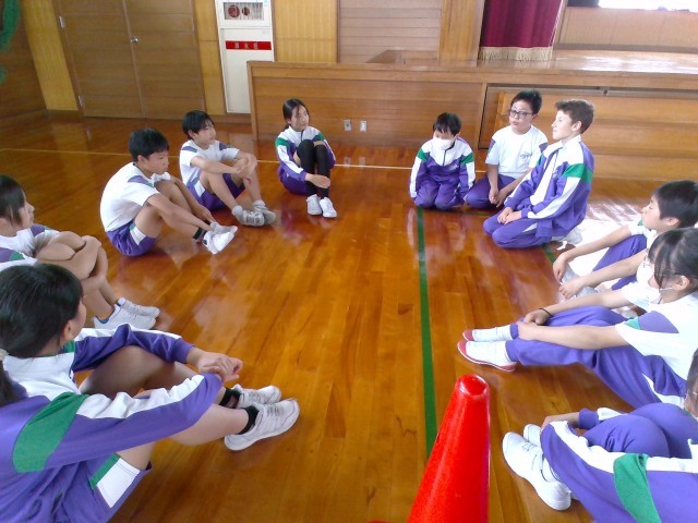 今年の運動会の高学年の団体競技は、「タイヤ引き」です。5、6年で初めて集まり、競技のルールについて確認し、団ごとにかけ声をかけ合って気合をいれました。