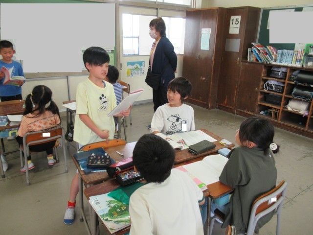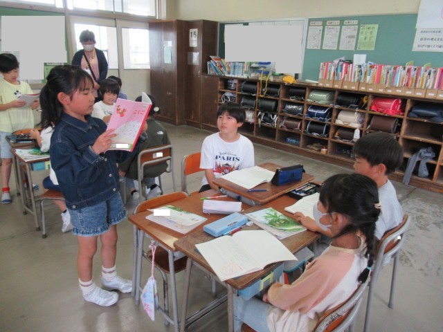 友達の話を聞いて、質問しました。相手の目を見ながら話を聞いたり、手を挙げて質問したりすることができました。