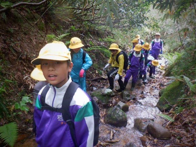前日の雨のせいで、場所によっては急流になっているところも子供たちはどんどんのぼっていきました。