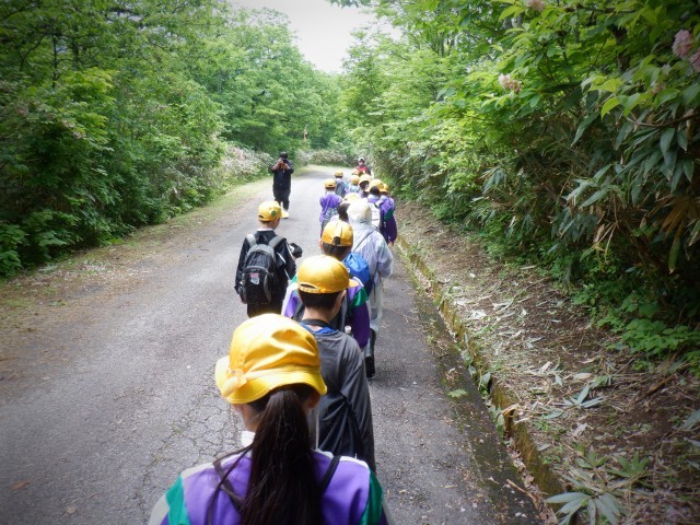 子供たちの中から 自然に「ここの枝注意だよ」「この先、急だから恵」と仲間に声をかける様子も見られました。