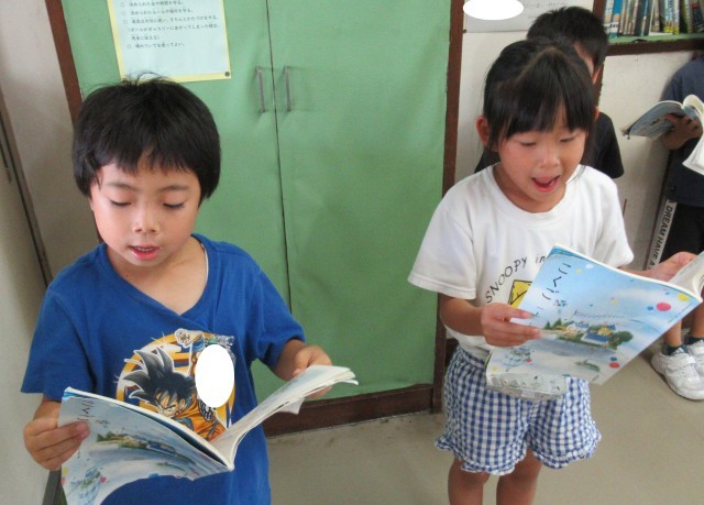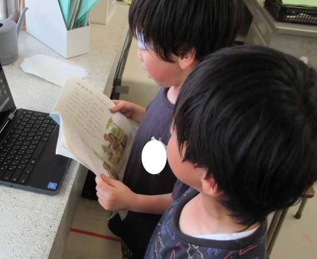 おむすびころりんの音読をがんばっています。動画を撮って見返したり、班の人と声をかけあったりしながら練習に取り組んでいます。